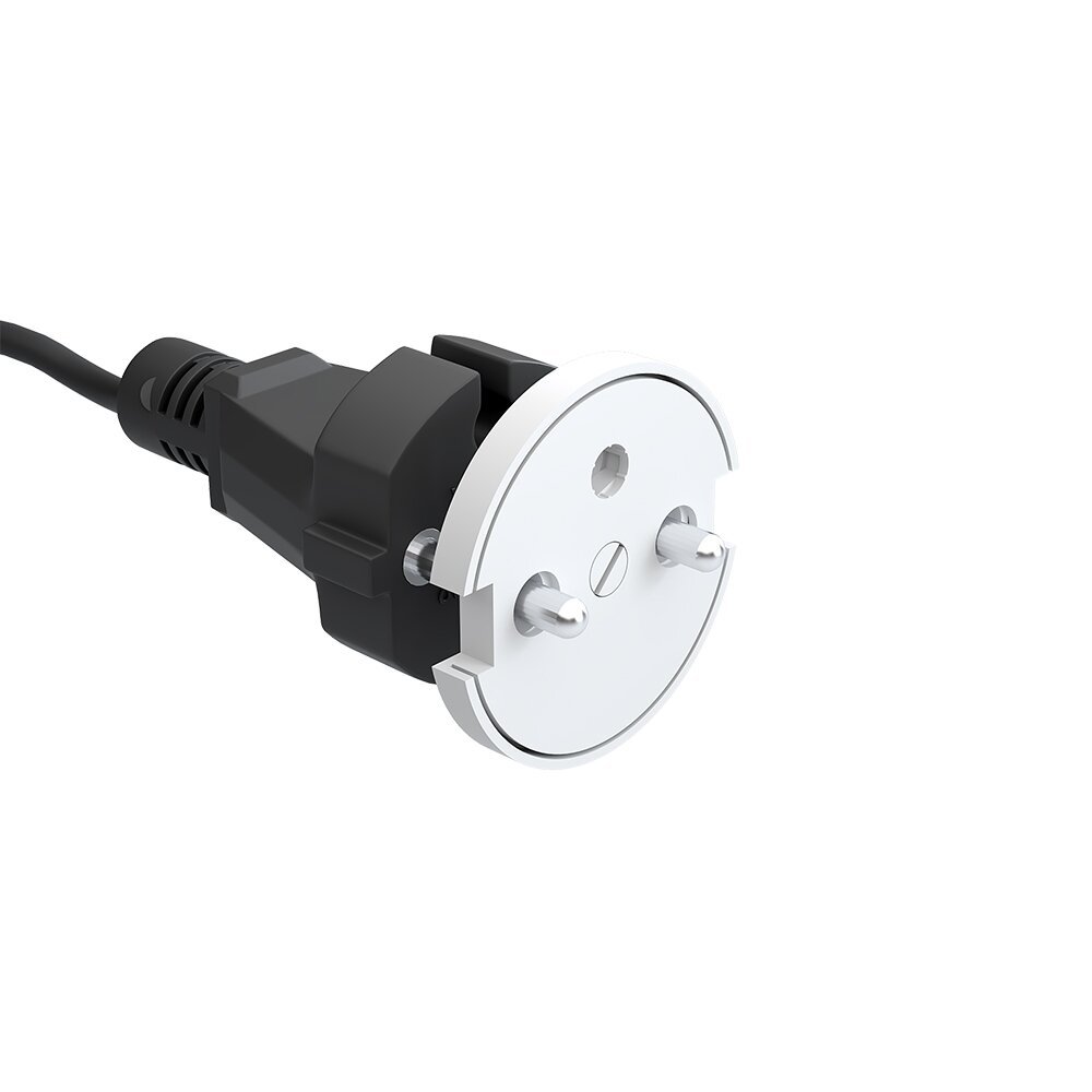 Uždėkite kištuką ant dangtelio angų ir pasukite pagal laikrodžio rodyklę. Apsauga išjungiama ir kištukas pasieks kištukinių lizdų angas. Apsaugai atrakinti galima naudoti bet kokį kištuką, pvz. įkroviklio kištukas.
