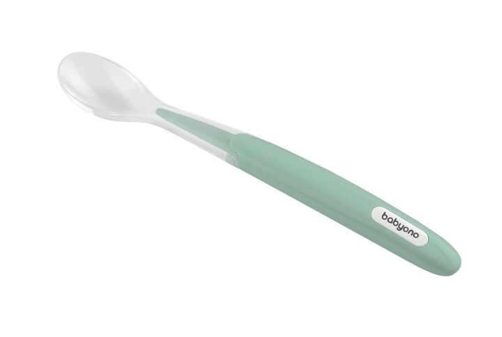 Babyono švelnus silikoninis dantų šepetėlis su žiedu, apsaugančiu nuo šepetėlio įdėjimo per giliai į burną.