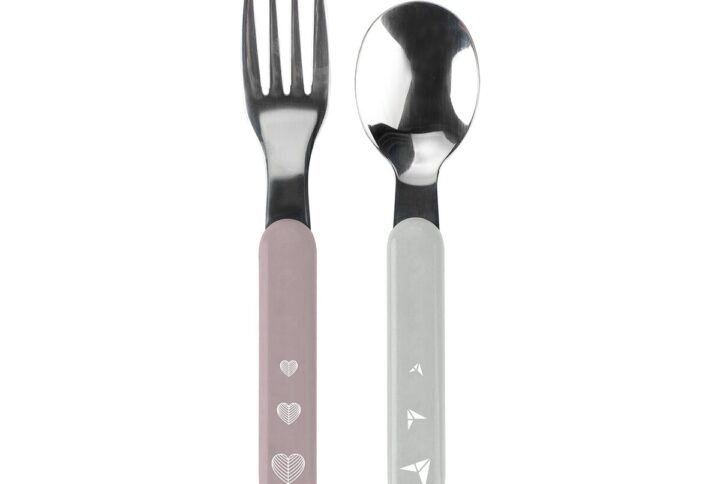 Dėl specialiai sukurtos ergonomiškos formos įrankiai puikiai tilps vaiko rankoje.Plati, užapvalinta rankena puikiai telpa į kūdikio ranką. Jos dėka vaikui lengviau išmokti naudotis stalo įrankiais valgymo metu.