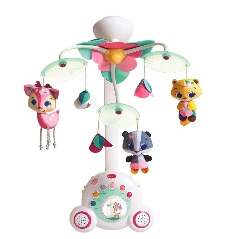 Unikali 4D karuselės judėjimo sistema (žaislai visada nukreipti į vaiką) ir žavių pakabinamų žaisliukų stebėjimas, „šokančių“ net pagal 18 skirtingų melodijų, lavina vaiko regėjimo koordinaciją ir pojūčius.